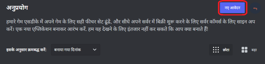 ऊपरी दाएँ कोने में नई एप्लिकेशन पर क्लिक करें।